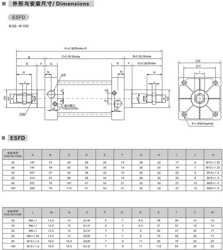 ESFD-32*25-S,ESFD-40*50-S,ESFD-50*75-S,ESFD-63*80-S,ESFD-80*100-S,標(biāo)準(zhǔn)氣缸