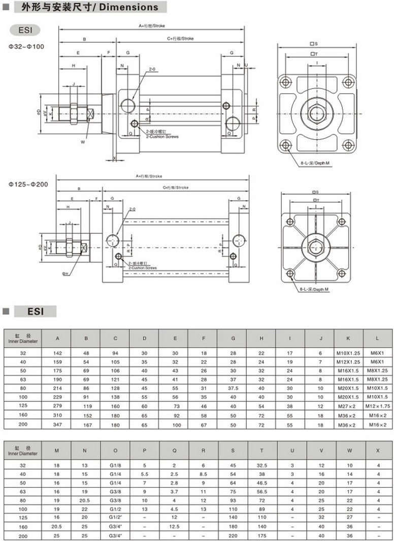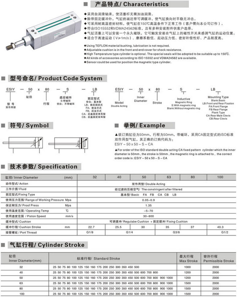 ESIY-32*25-S,ESIY-40*50-S,ESIY-50*75-S,ESIY-63*80-S,ESIY-80*100-S,標(biāo)準(zhǔn)氣缸