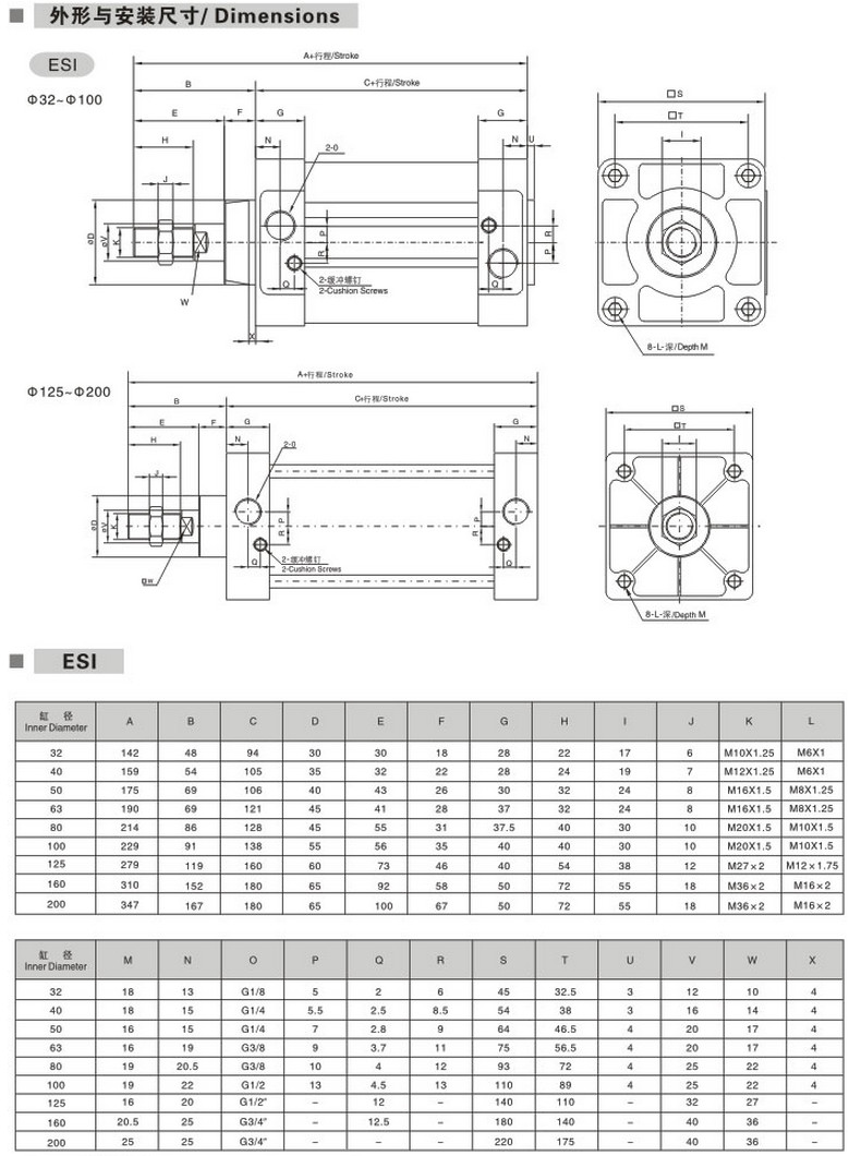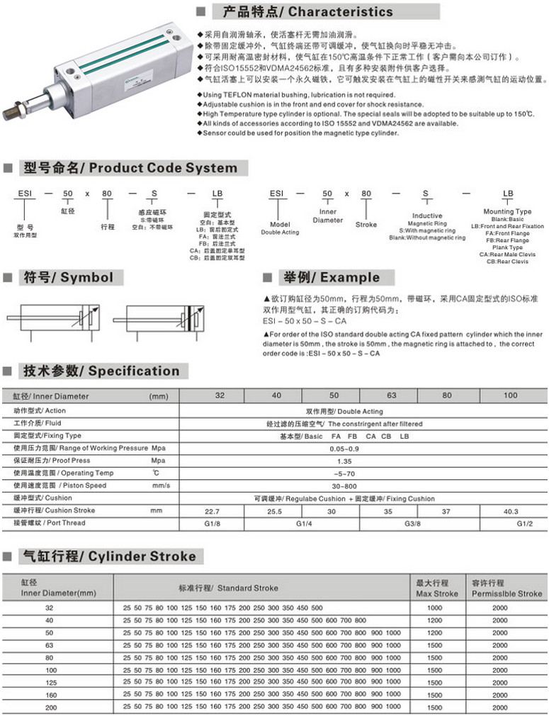 ESI-32*25-S,ESI-40*50-S,ESI-50*75-S,ESI-63*80-S,ESI-80*100-S,標(biāo)準(zhǔn)氣缸