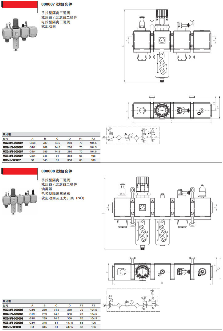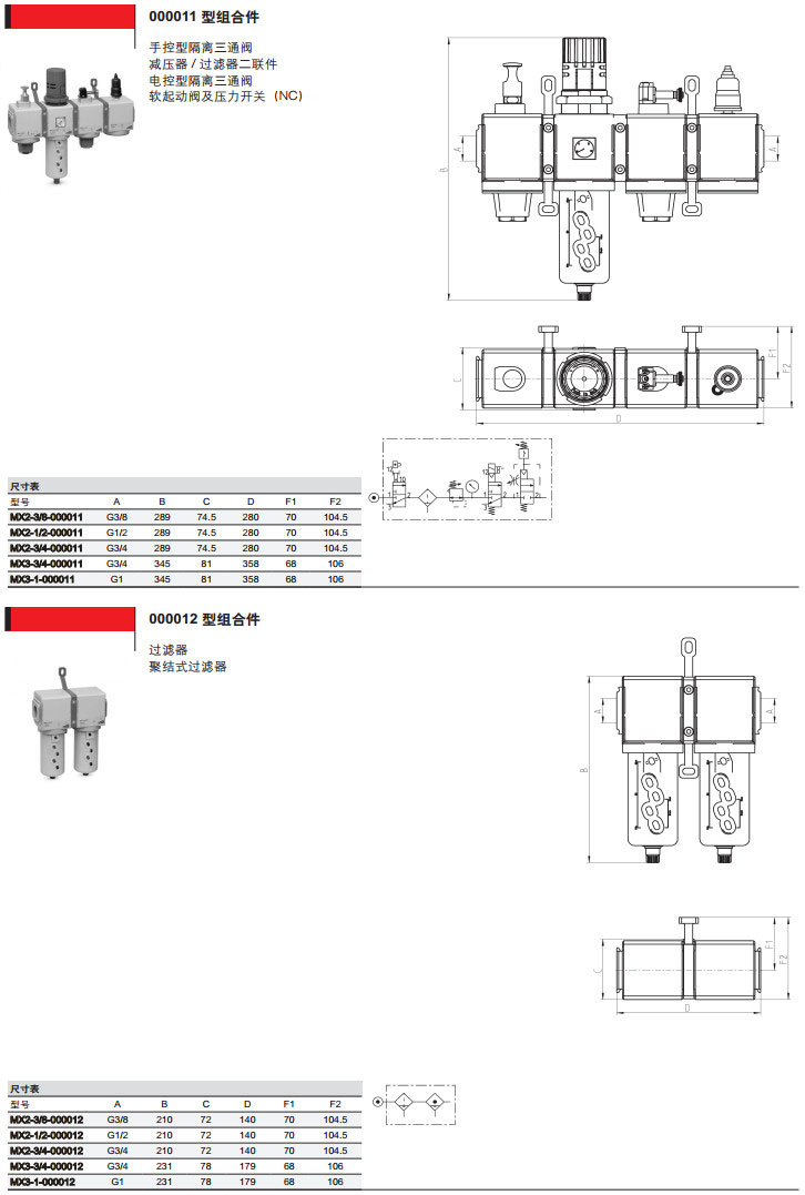 MX2-3/8-000001,MX3-1/2-000003,MX2-3/4-000010,MX3-1-000005,camozzi氣源處理裝置組合件