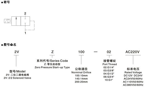 2VZ100-02,2VZ100-03,2VZ100-04,2VZ140-06,2VZ200-06,2VZ200-10,零壓?jiǎn)?dòng)電磁閥