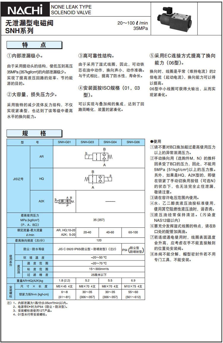 SNH-G01,SNH-G03,SNH-G04,SNH-G06,SNH-G01-AR-R-D2-11,NACHI無泄漏型電磁閥