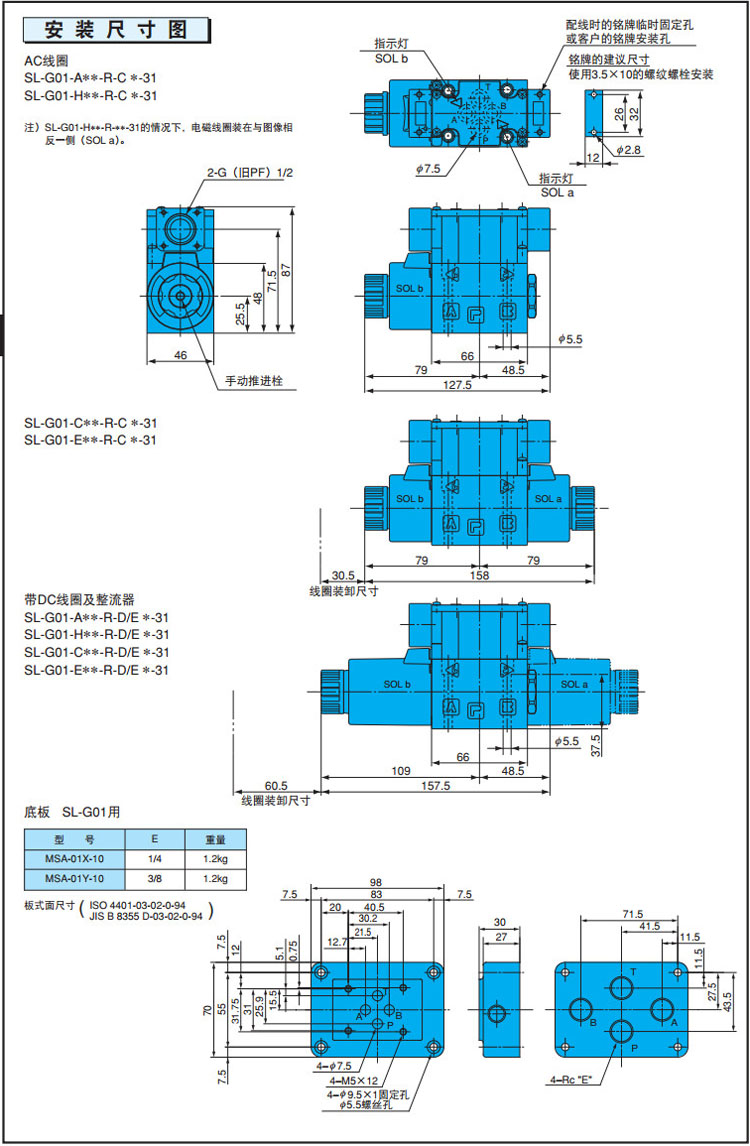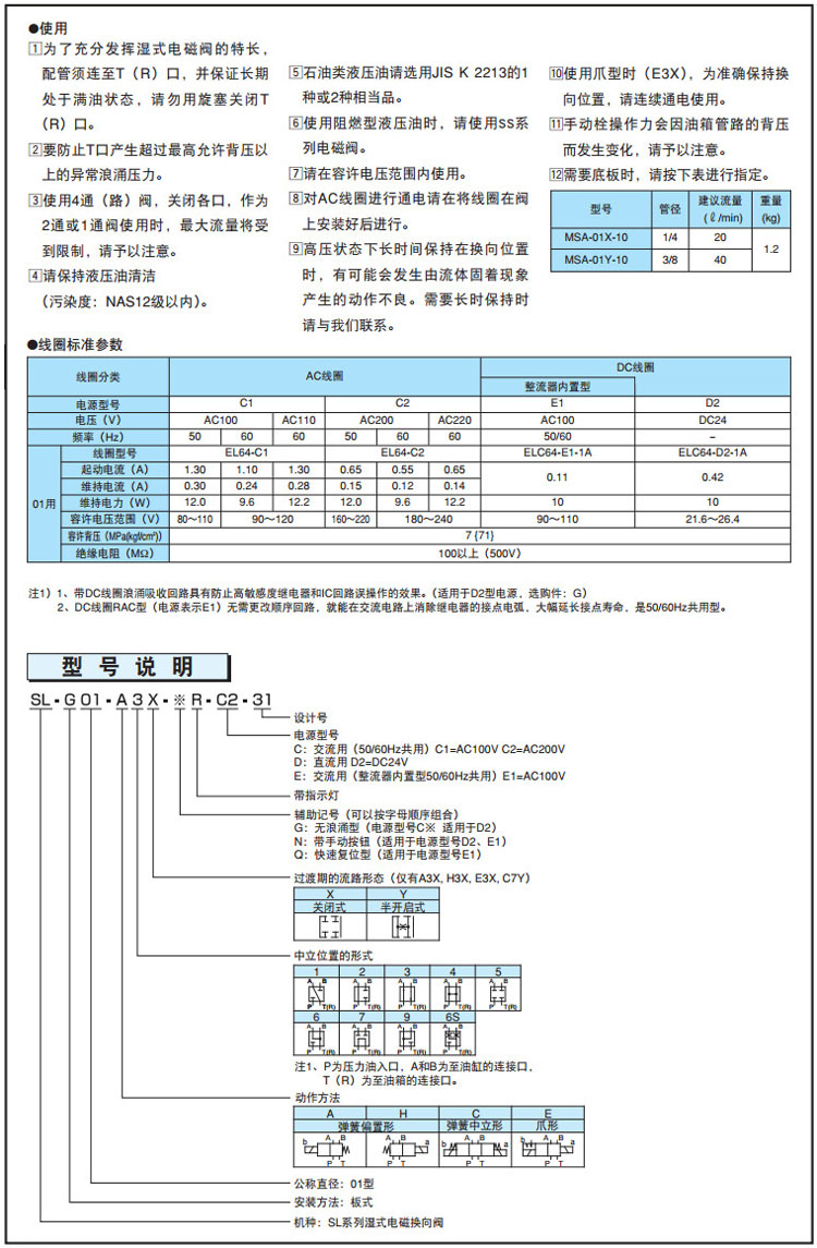 SL-G01-A5-R-C1-31,SL-G01-A5-R-C2-31,SL-G01-A5-R-D2-31,SL-G01-A5-R-E1-31,NACHI低電力型電磁換向閥