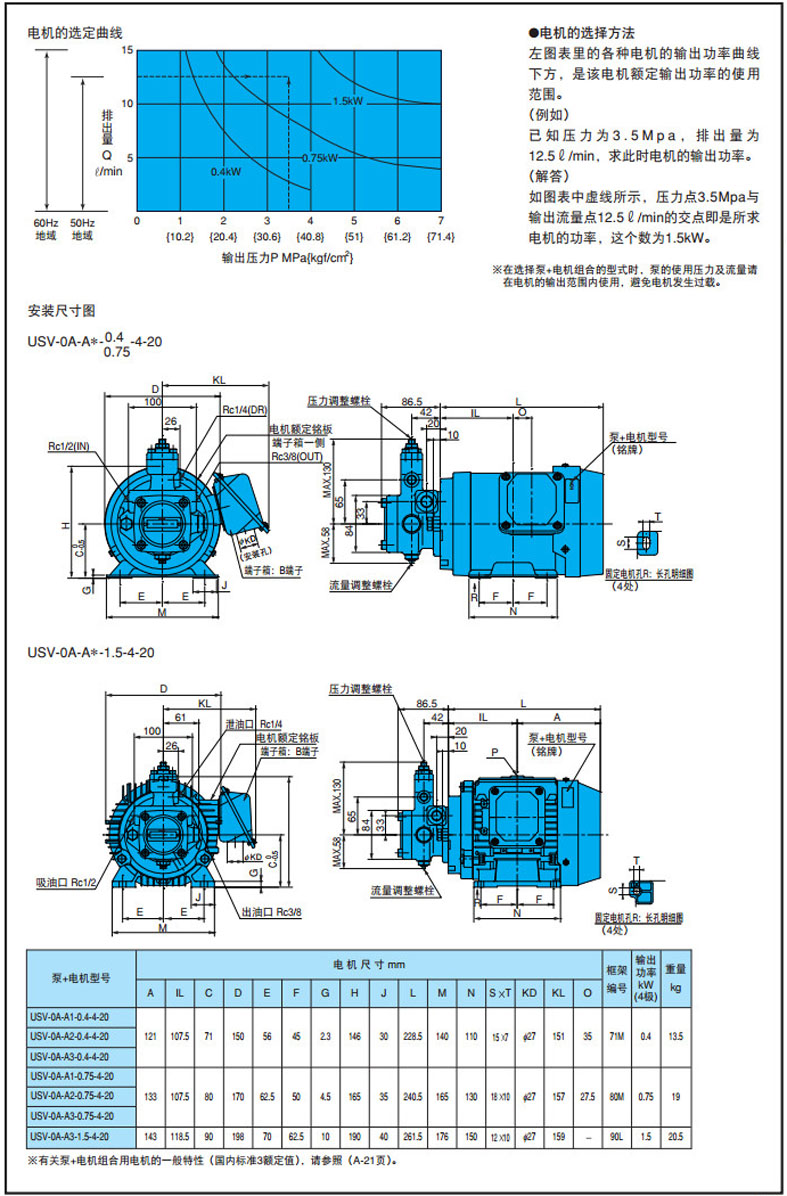 USV-0A-A1,USV-0A-A2,USV-0A-A3,USV-0A-A1-0.4-4-20,USV-0A-A3-0.75-4-20,NACHI泵+電機(jī)組合