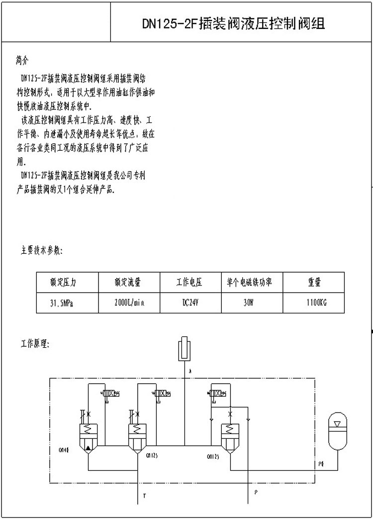 DN125-2F,插裝閥液壓控制閥組