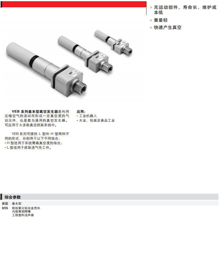 VEB-05H,VEB-07H,VEB-10H,VEB-15L,VEB-20L,camozzi基本型真空發(fā)生器