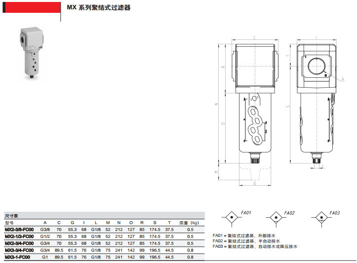 MX2-3/8-FC00,MX2-1/2-FC03,MX3-1/2-FC05,MX3-3/8camozzi聚結(jié)式過濾器