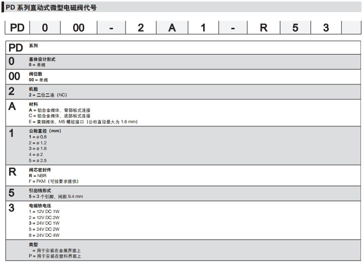 PD000-2A1-R51,PD000-2A5-F52,PD000-2E1-R53,camozzi直動(dòng)式微型電磁閥