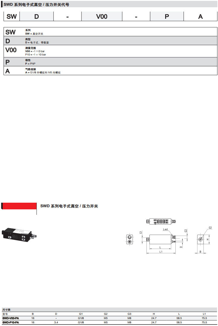 SWD-V00-PA,SWD-P10-PA,camozzi壓力開關(guān)