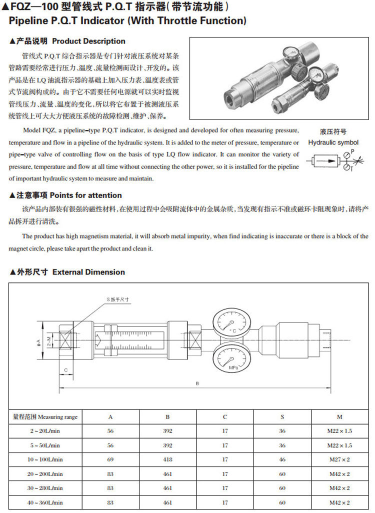 FPT-100,標(biāo)準(zhǔn)型壓力變