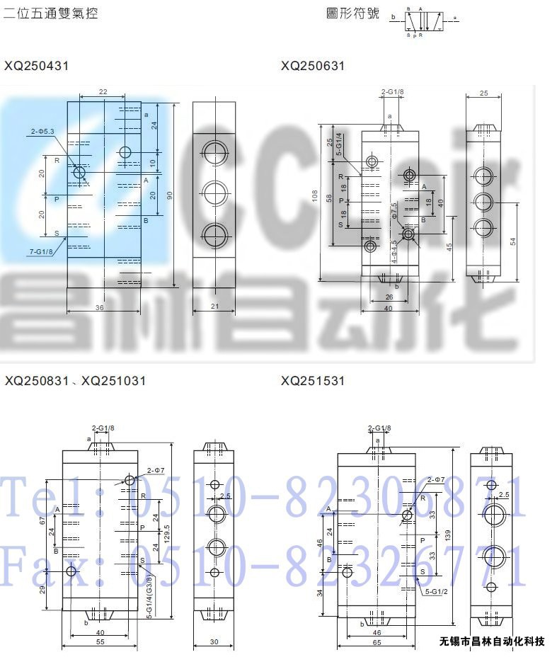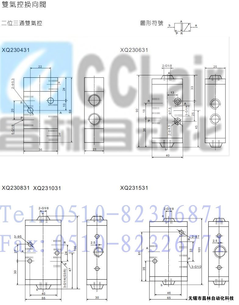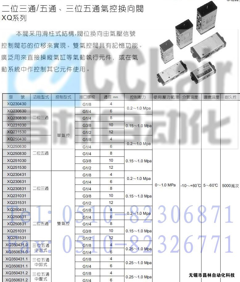 XQ231531,XQ250431,XQ250631,XQ250831,XQ251031,XQ251531,XQ350431,二位三通/五通、三位五通氣控換向閥