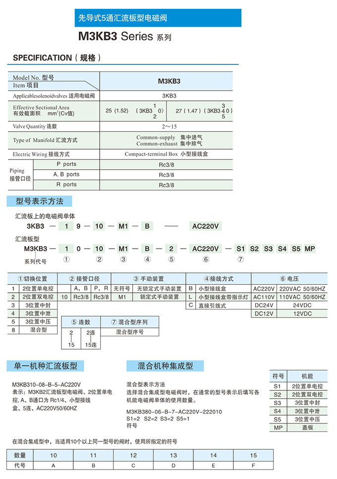 3KB319-10,3KB329-10,3KB339-10,3KB349-10,3KB359-10,3KB389-10,3KB319-10-B,先導(dǎo)式5通匯流板型電磁閥