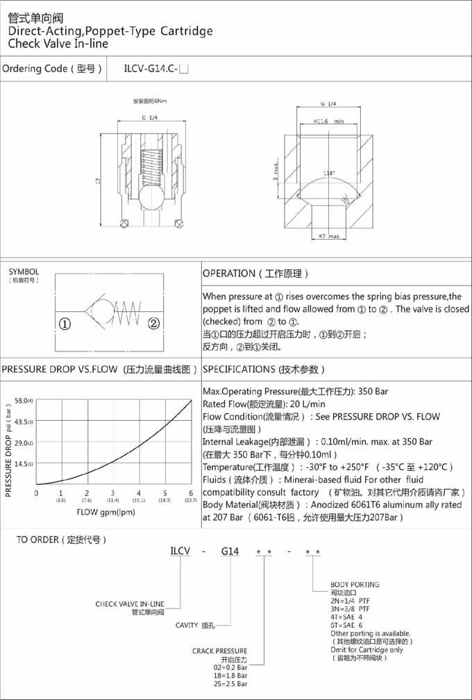 ILCV-G14.C-02,ILCV-G14.C-18,ILCV-G14.C-25,管式單向閥