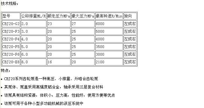 CBJ20-G2,CBJ20-F3,CBJ20-F4,CBJ20-F5,CBJ20-F6,CBJ20-E8,齒輪泵
