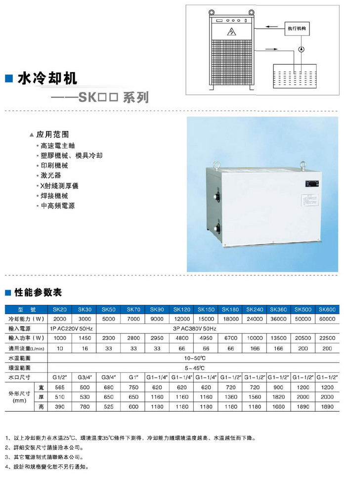 SK20,SK30,SK50,SK70,SK90,SK120,SK150,SK180,SK240,SK360,SK500,SK600,水冷卻機(jī)