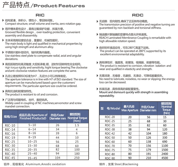 RIC-10,RIC-14,RIC-16,RDC-20,RDC-25,RDC-35,RDC-38,膜片式聯(lián)軸器