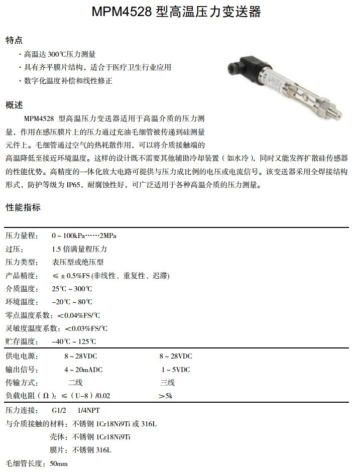MPM4528-0E,MPM4528-100E,MPM4528-2E,MPM4528-0F,MPM4528-100F,MPM4528-2F,高溫壓力變送器 |