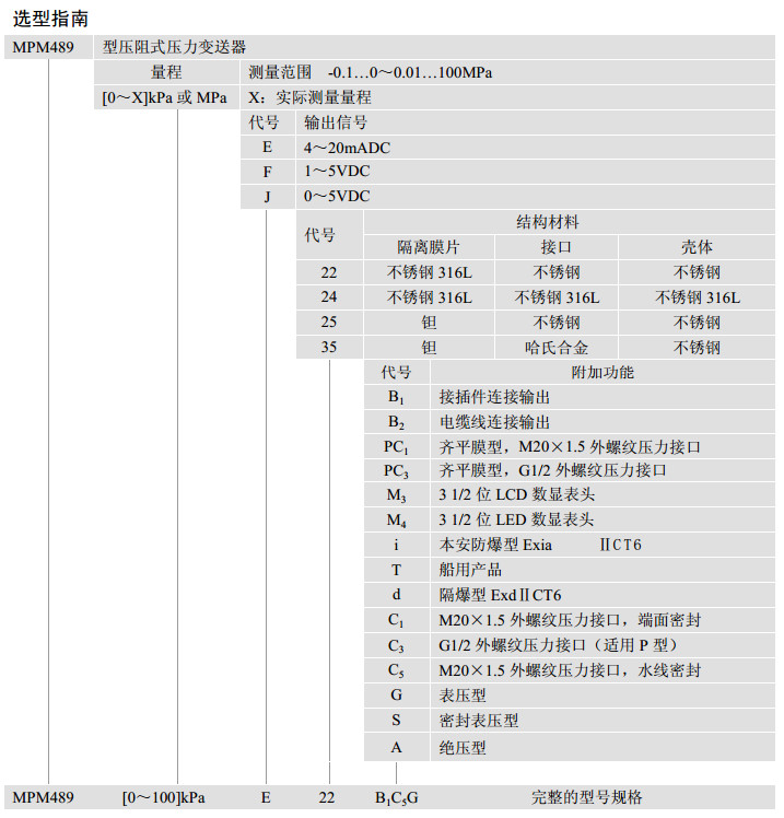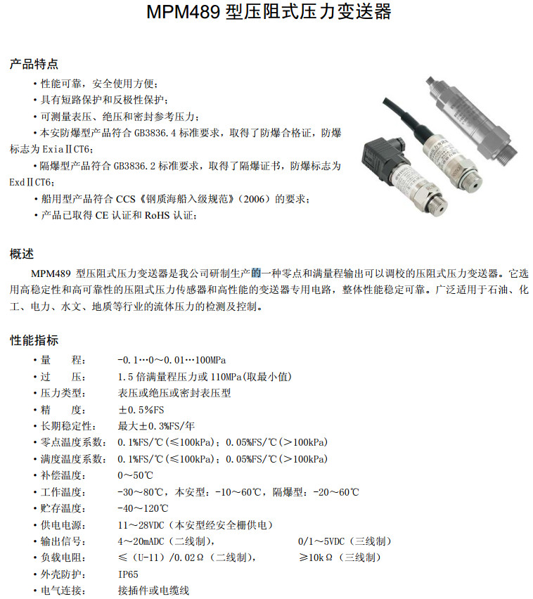 MPM489-0.1,MPM489-0,MPM489-0.01,MPM489-100,壓阻式壓力變送器
