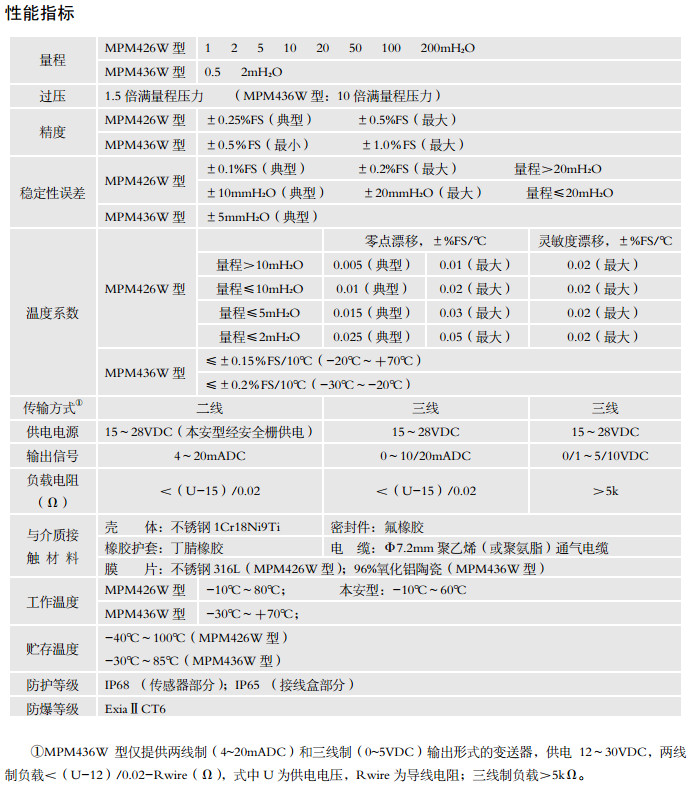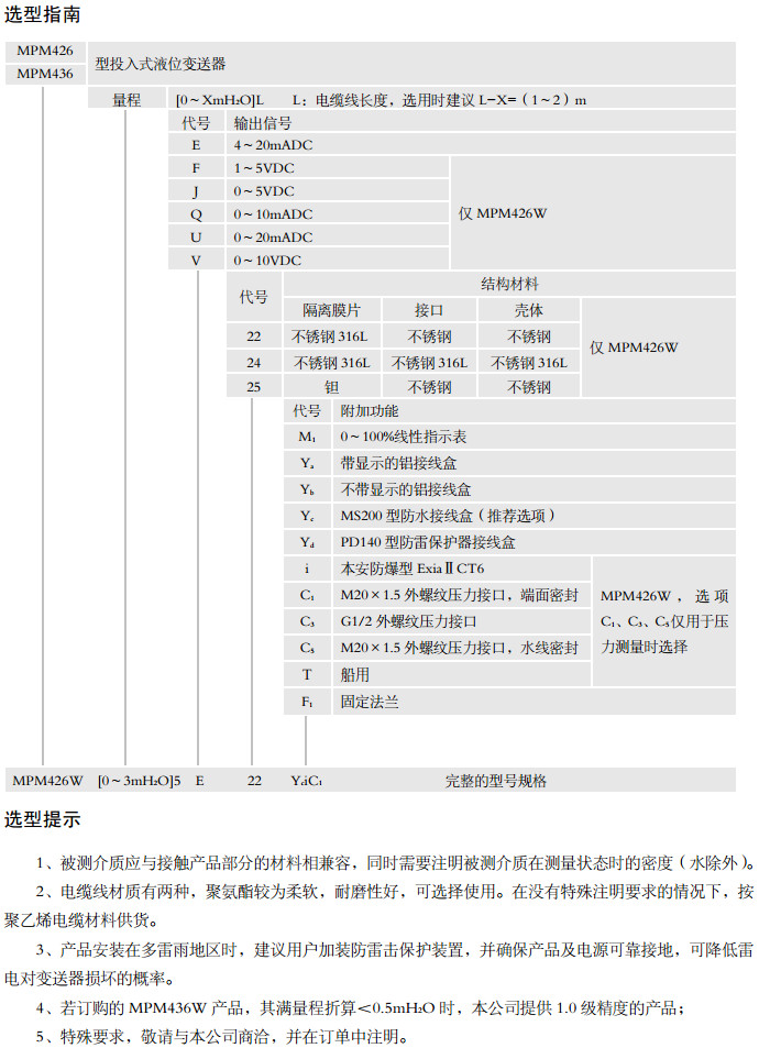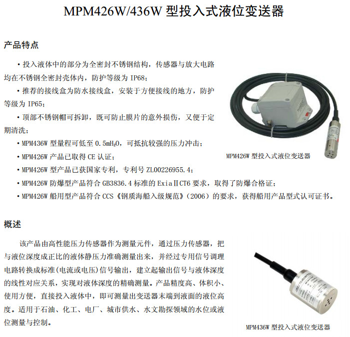MPM426W-1,MPM426W-2,MPM426W-5,MPM436W-0.5,MPM436W-2,投入式液位變送器
