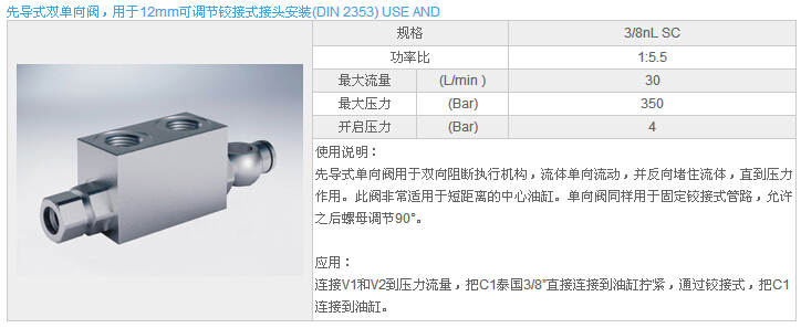 HYVBPDE3/8" LSC,先導式雙單向閥