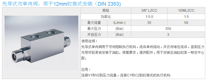 HYVBPDE 3/8" L2 CC,HYVBPDE 1/2" L2 CC,先導(dǎo)式雙單向閥