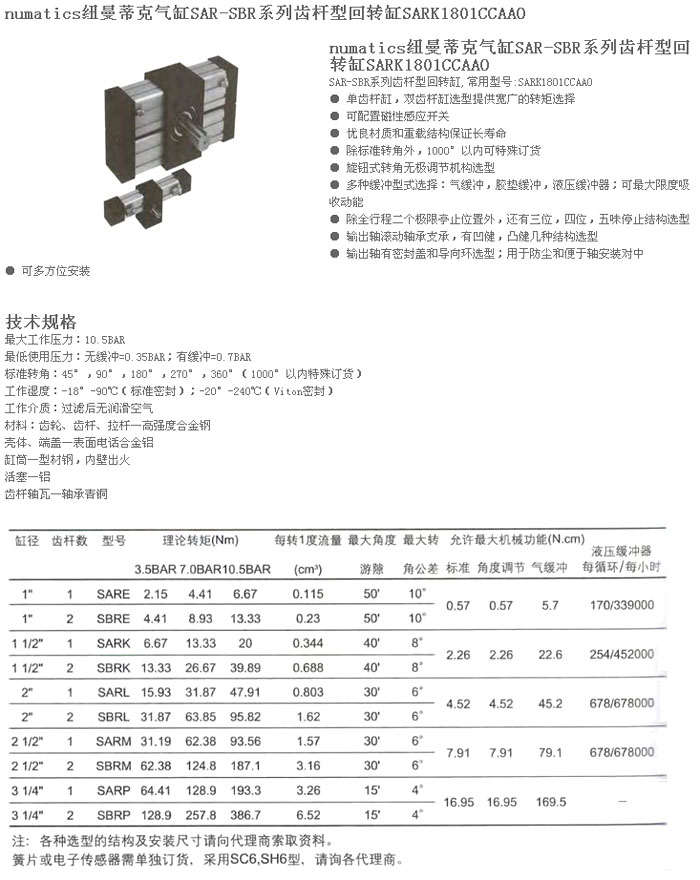SARK1801CCAA0,numatics齒輪型回轉(zhuǎn)缸