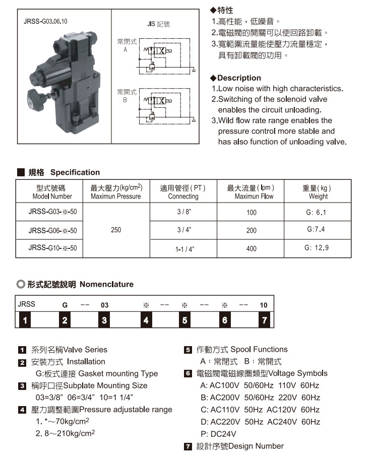 JRSS-G03-1AA-50,JRSS-G06-2AB-50,JRSS-G10-2AD-50,taicin低噪音式電磁控制溢流閥