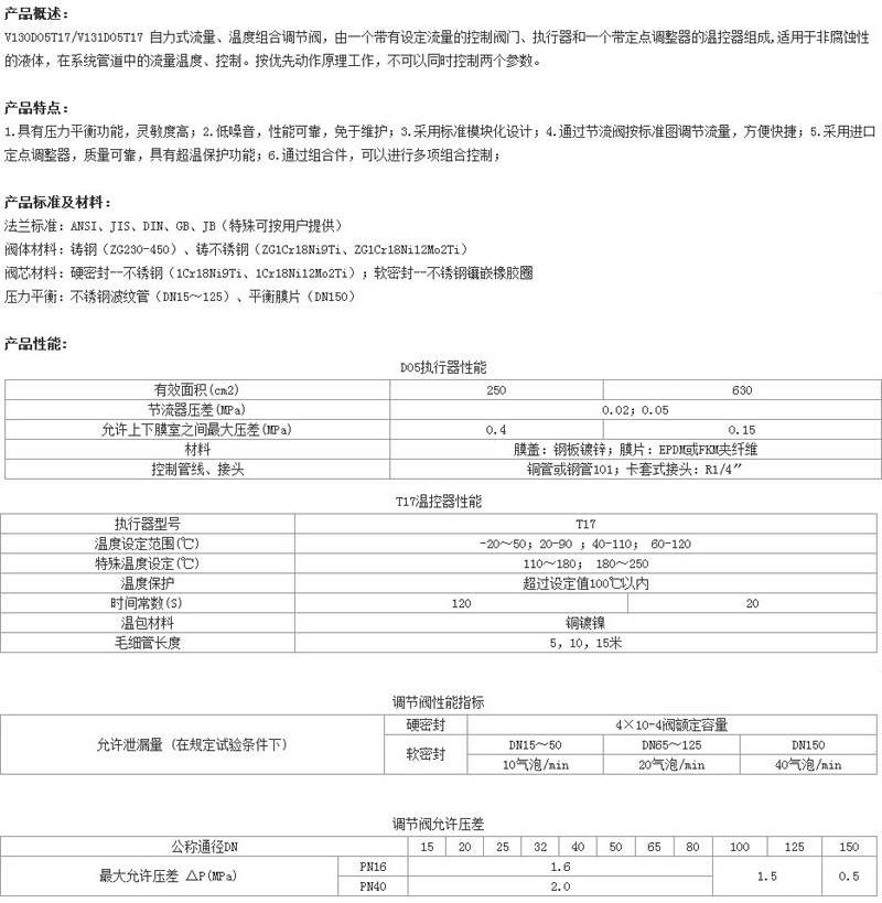 V131D05T17-16C-DN15,V131D05T17-40C-DN20,V131D05T17-16C-DN32,自力式流量溫度組合調節(jié)閥 |