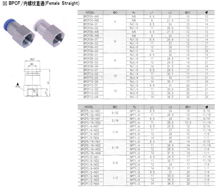 BPCF04,BPCF06,BPCF08,BPCF10,BPCF12,BPCF5/32,BPCF3/16,BPCF1/2,BPCF1/4,BPCF1/2-N04,快插式氣動管接頭