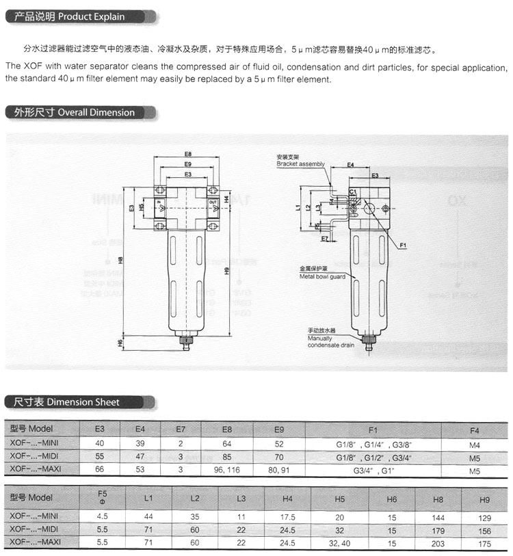 XOF-1/8-MINI,XOF-3/8,XOF-3/4,XOF-1/4,XOF-1/2,XOF-1,空氣過濾器