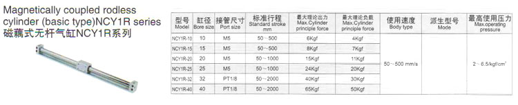 NCY1R-10,NCY1R-15,NCY1R-20,NCY1R-25,NCY1R-32,NCY1R-40,磁藕式無桿氣缸 |