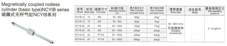 NCY1B-10,NCY1B-15,NCY1B-20,NCY1B-25,NCY1B-32,NCY1B-40,磁藕式無桿氣缸 |