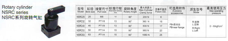 NSRC25,NSRC32,NSRC40,NSRC50,NSRC63,旋轉(zhuǎn)氣缸