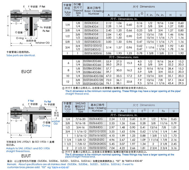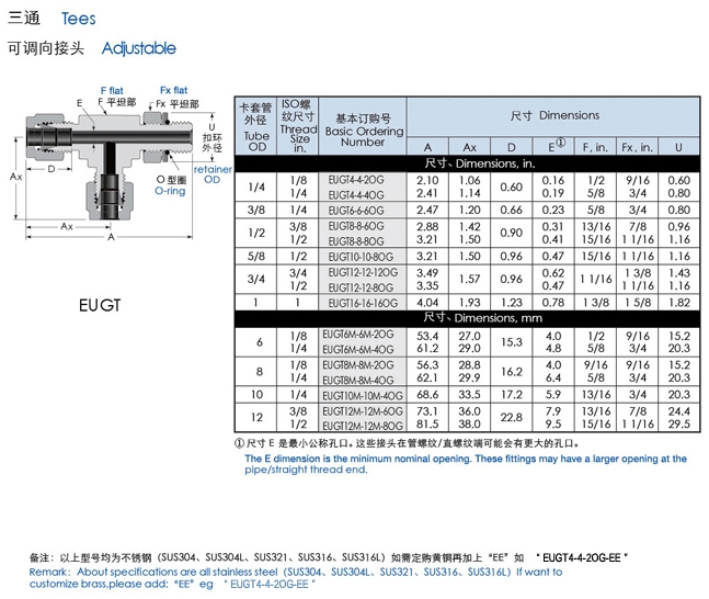 EUGT4,EUGT6,EUGT8,EUGT10,EUGT12,EUUT4,EUUT6,EUUT8,EUUT12,EUUT24,三通可調(diào)向卡套接頭