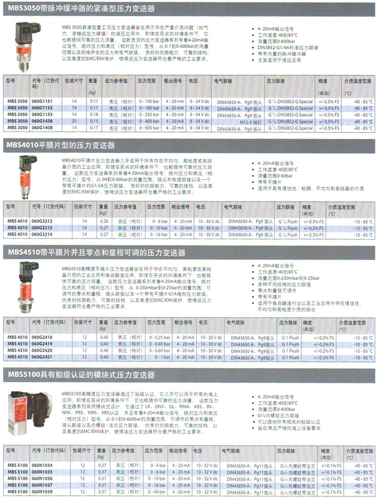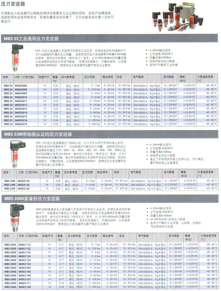 MBS33,MBS3000,MBS3050,MBS4010,MBS5150,EMP2,AKS33,MBS1900,壓力變送器