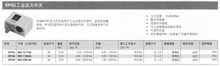 KPI35,KPI36,KPI38,輕工業(yè)壓力開關(guān)