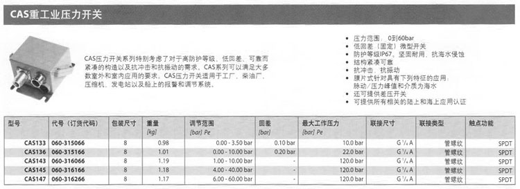 CAS133,CAS136,CAS143,CAS145,CAS147,重工業(yè)壓力開關