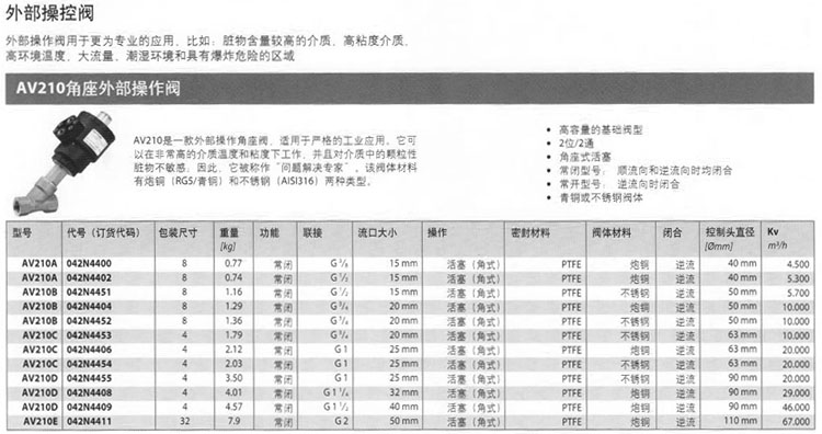 AV210A,AV210B,AV210C,AV210D,AV210E,角座外部操作閥