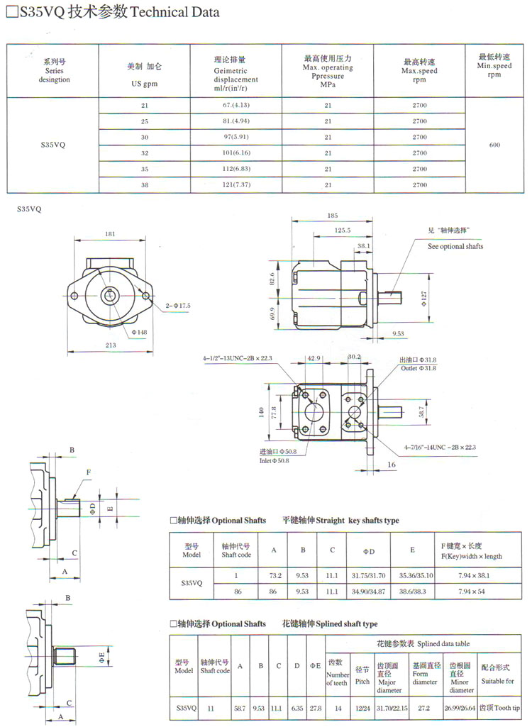 S20VQ2A,S25VQ12A,S35VQ30A,S45VQ50A,S20VQ6A,S25VQ17A,S35VQ38A,葉片泵