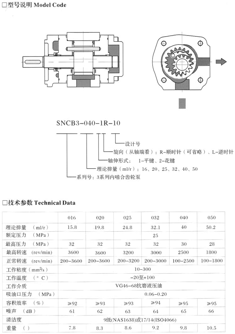 SNCB3-016-1R-10,SNCB3-020-2R-10,SNCB3-032-1L-10,SNCB3-040-2L-10,內(nèi)嚙合齒輪泵