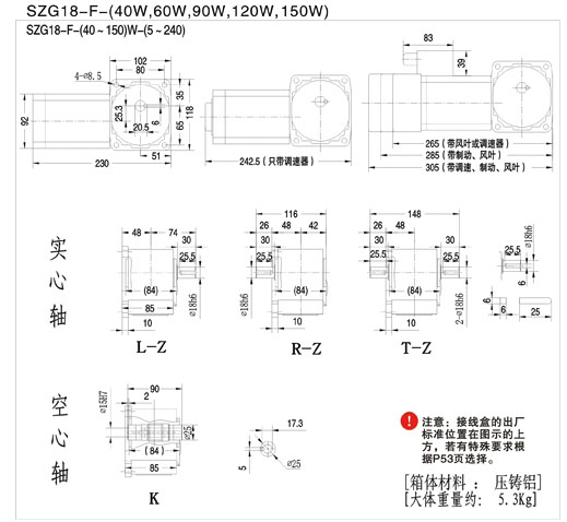 SZG18-F-40W,SZG18-F-60W,SZG18-F-90W,SZG18-F-120W,SZG18-F-150W,雙曲面齒輪減速機