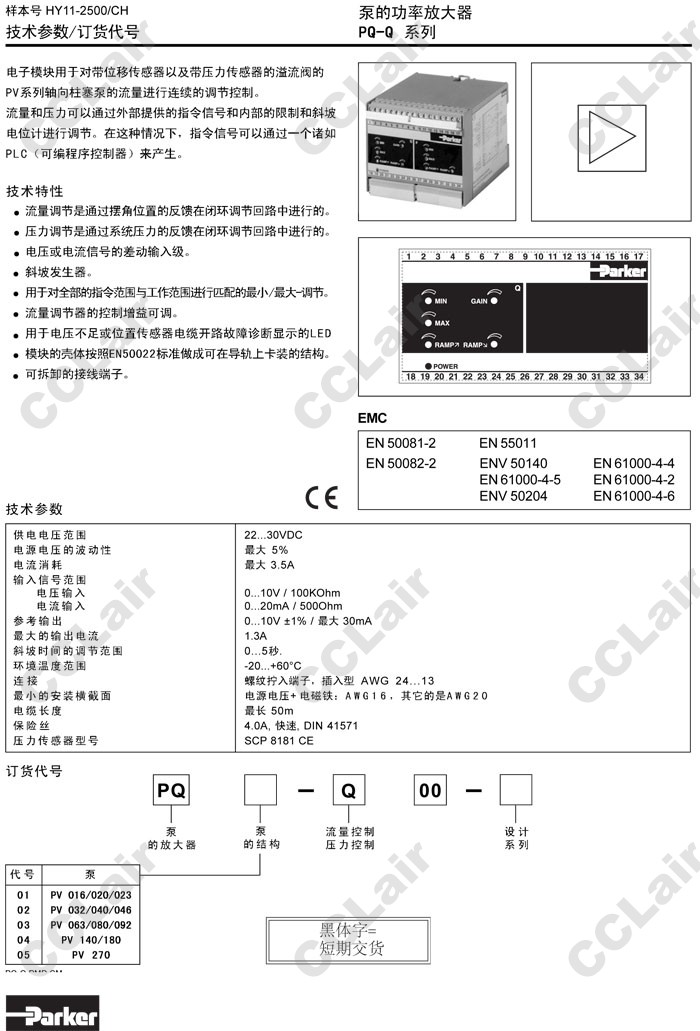 PQ01-Q00,PQ02-Q00,PQ03-Q00,PQ04-Q00,PQ05-Q00,Parker功率放大器