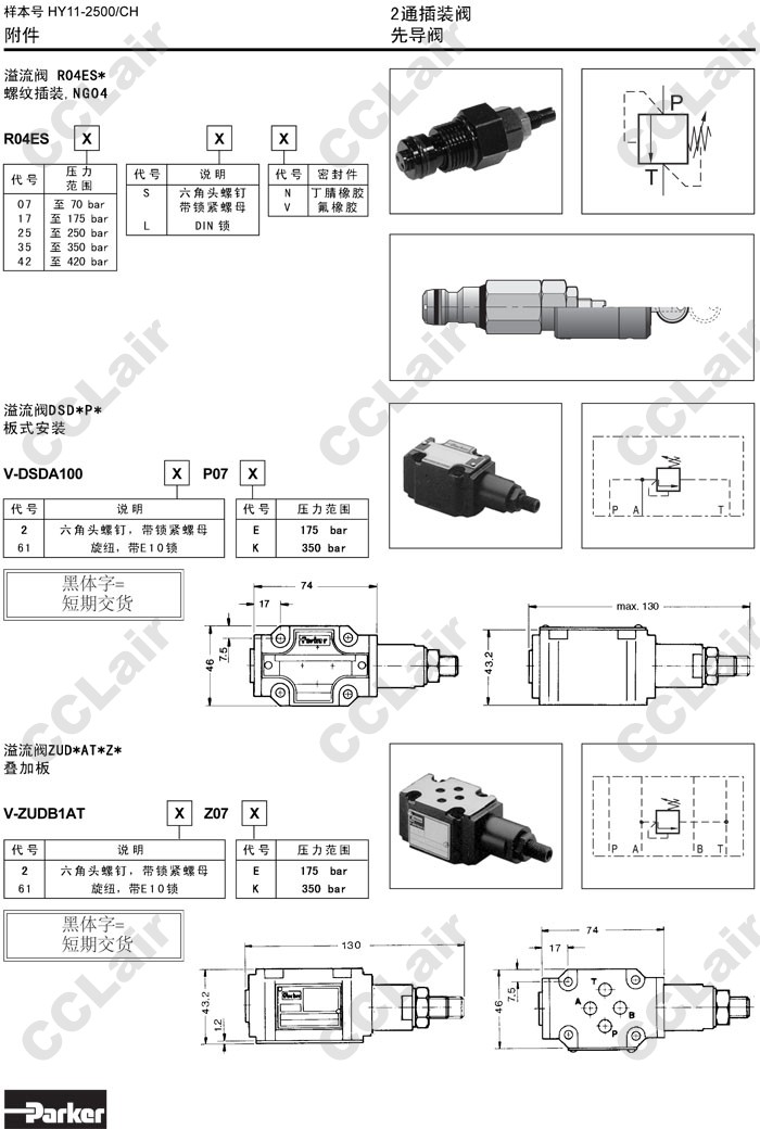 V-DSDA1002P07E,V-DSDA1002P07K,V-DSDA10061P07E,V-DSDA10061P07K,Parker2通插裝溢流閥