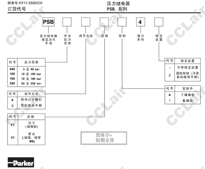 PSB040,PSB100,PSB160,PSB250,PSB040AF1A4,PSB100AF1A4,PSB160AF1A4,PSB250AF1A4,Parker壓力繼電器