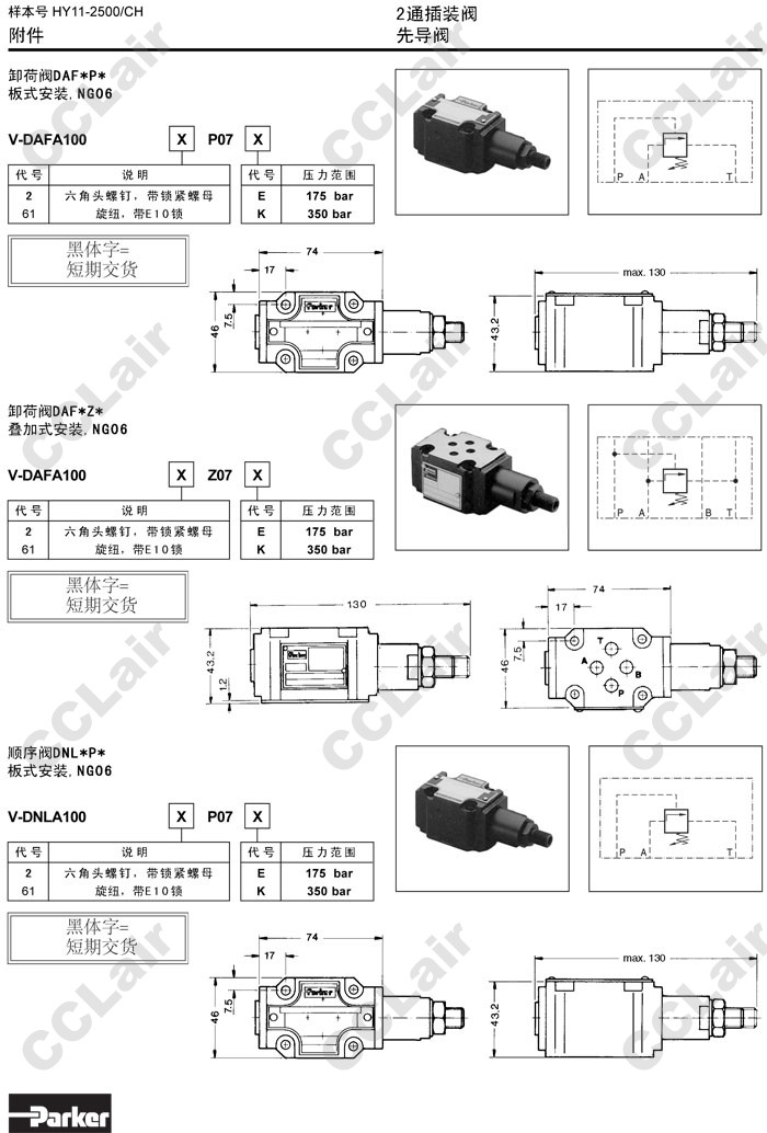 V-DAFA1002Z07E,V-DAFA1002Z07K,V-DAFA10061Z07E,V-DAFA10061Z07K,Parker2通插裝卸荷閥 |