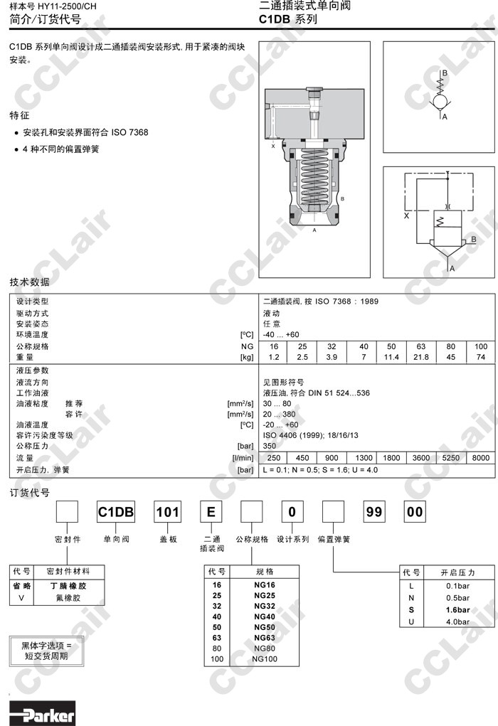 C1DB101E16,C1DB101E25,C1DB101E32,C1DB101E40,C1DB101E50,C1DB101E63,C1DB101E80,C1DB101E100,Parker二通插裝式 |