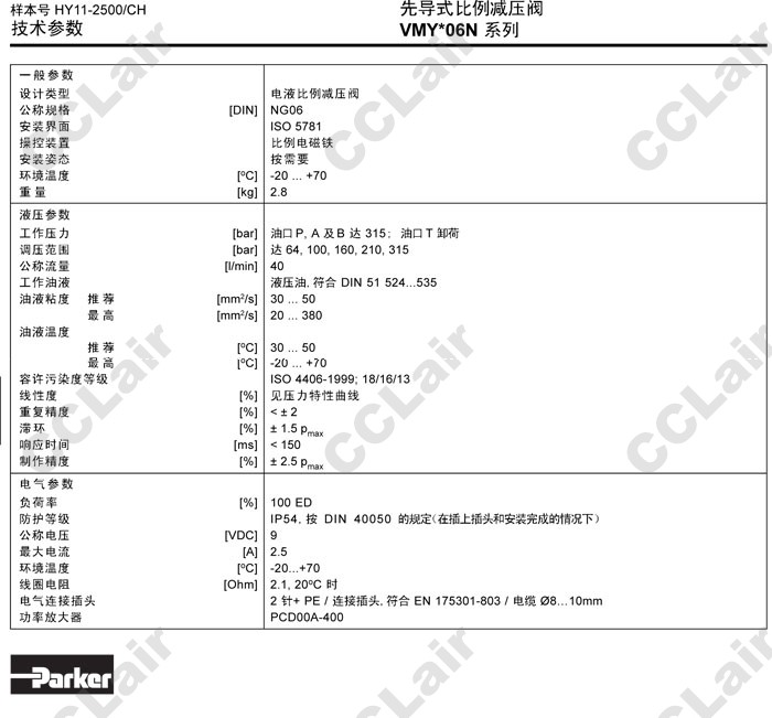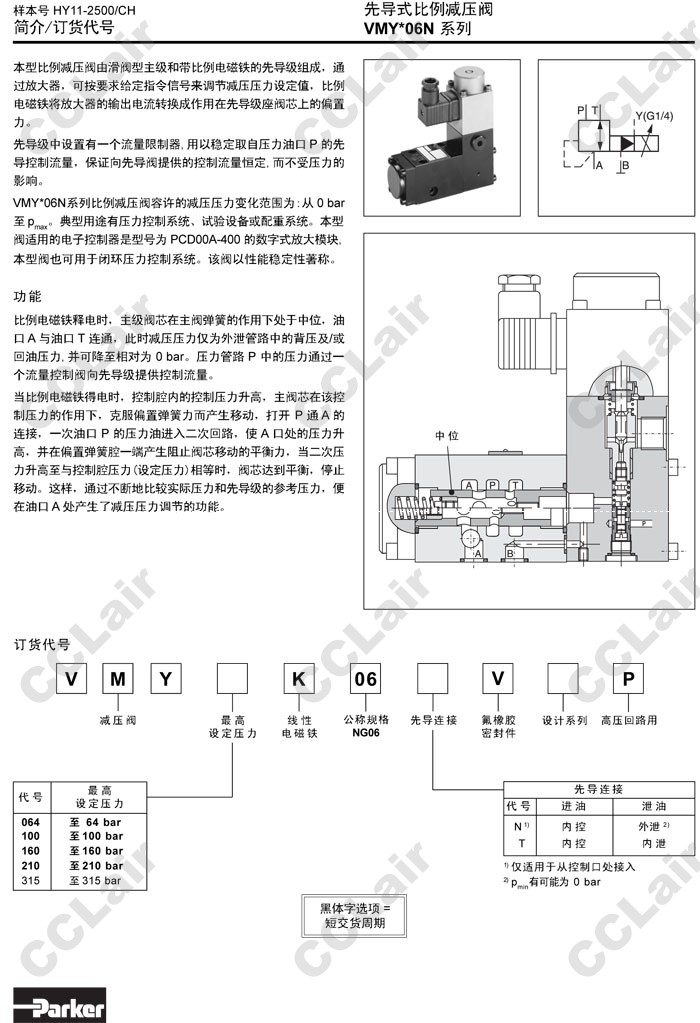 VMY064K06,VMY100K06,VMY160K06,VMY210K06,VMY315K06,Parker先導(dǎo)式比例減壓閥