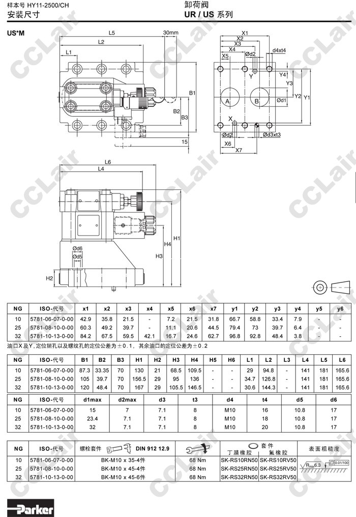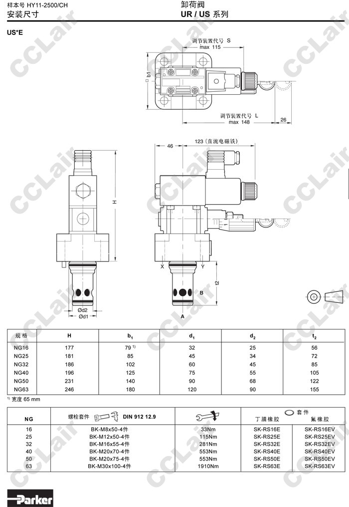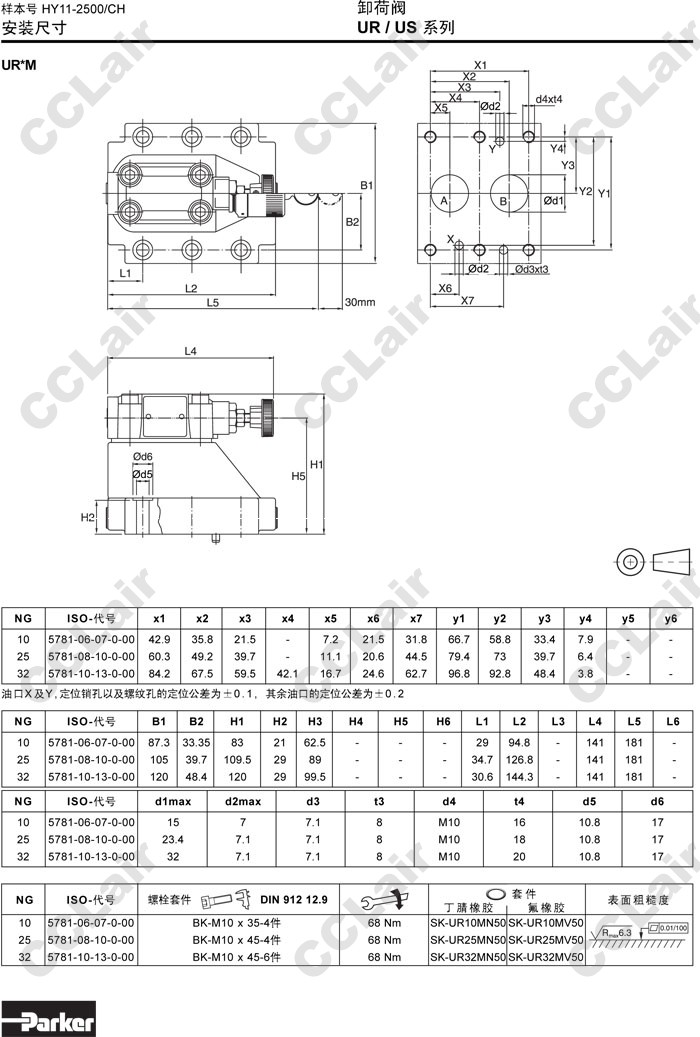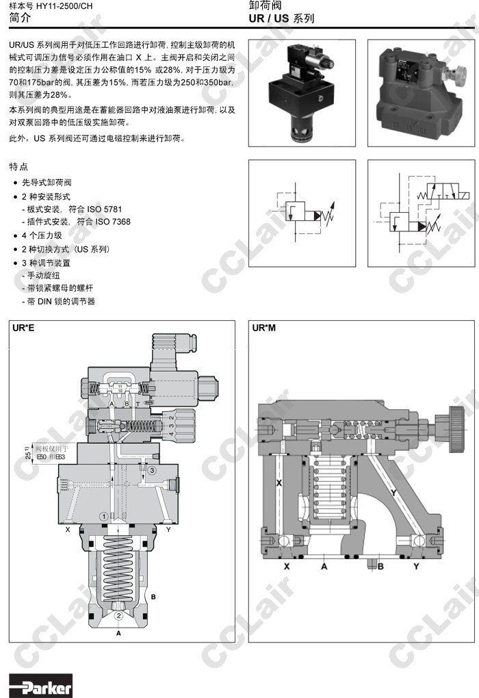 UR10M,UR25M,UR32M,UR16E,UR25E,UR32E,UR40E,UR50E,UR63E,UR10M07L1SN,Parker卸荷閥