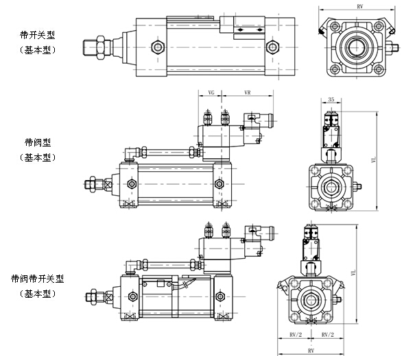 | 氣缸內徑Ф(mm) | RV | VG | VL | VR |