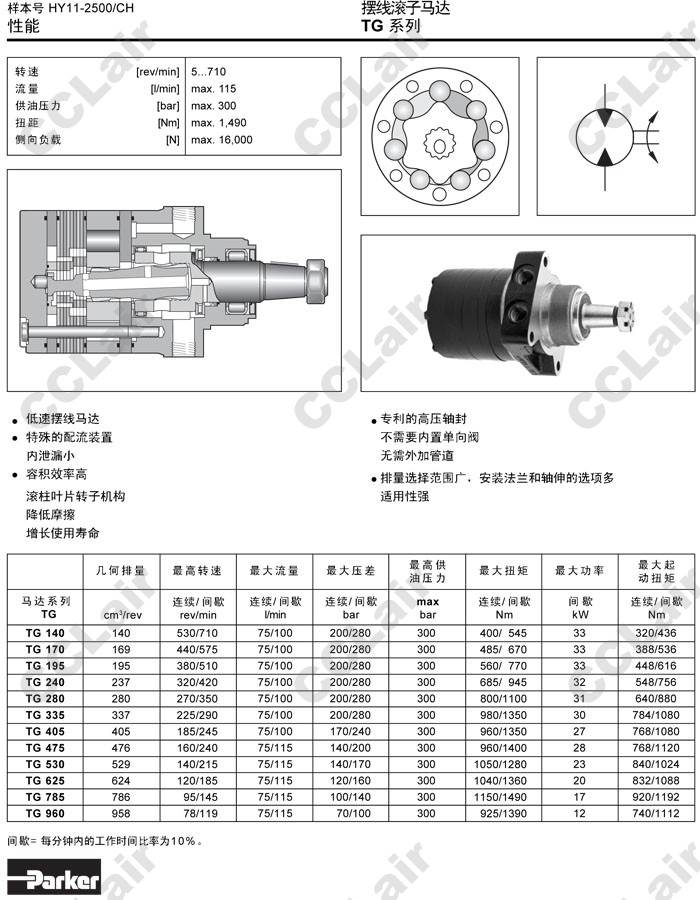 TG0140,TG0170,TG0195,TG0240,TG0280,TG0335,TG0405,TG0475,TG0530,TG0625,TG0785,TG0960,Parker擺線滾子馬達(dá) |